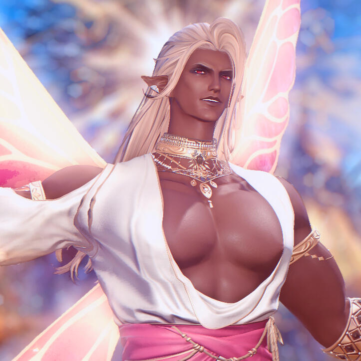 Ethnicity: Mixed; Hellsguard Roegadyn (maternal) / Duskwight Elezen (paternal), Archfey (Not visible to people with normal vision - only aethersight can see this)